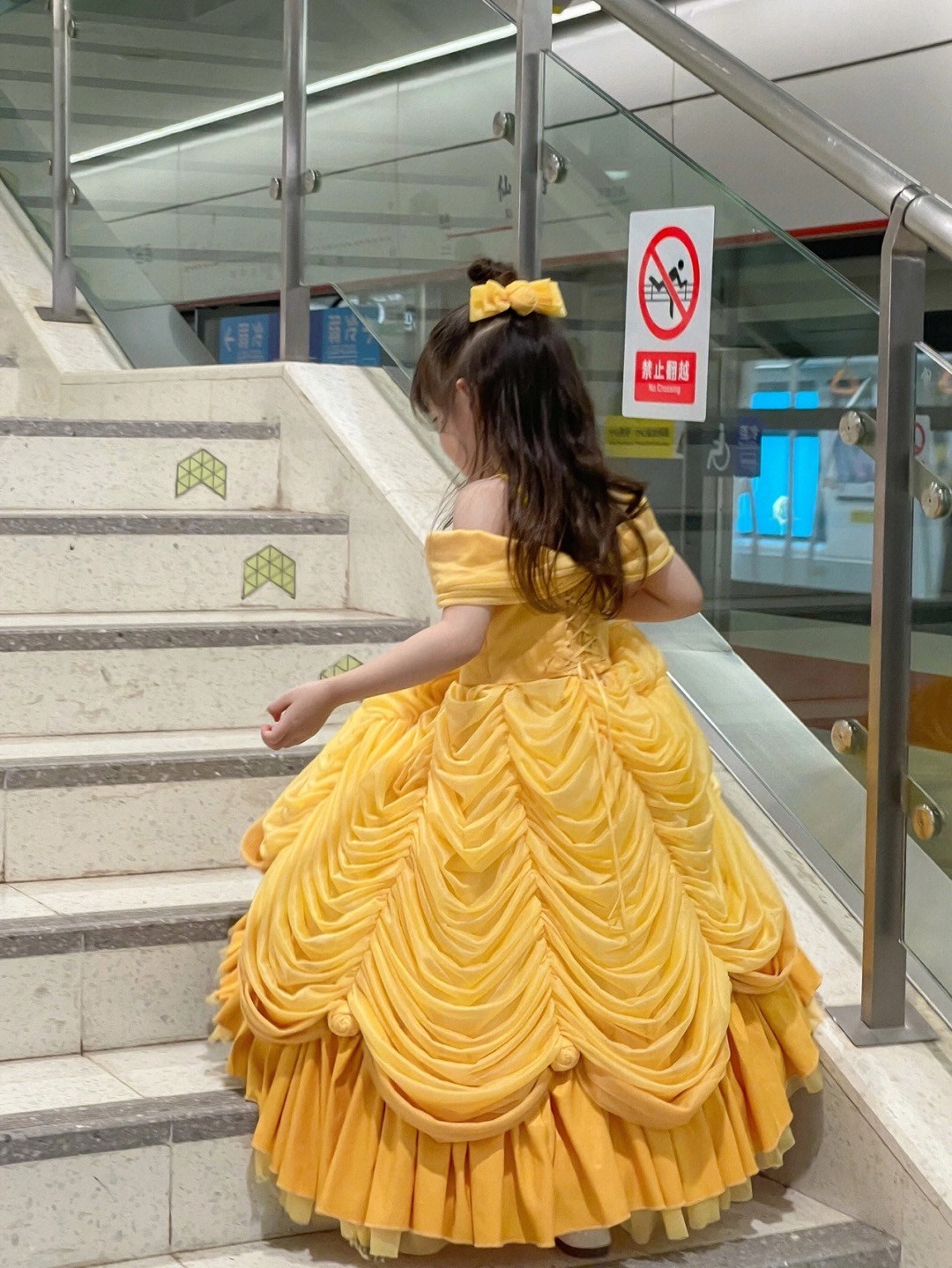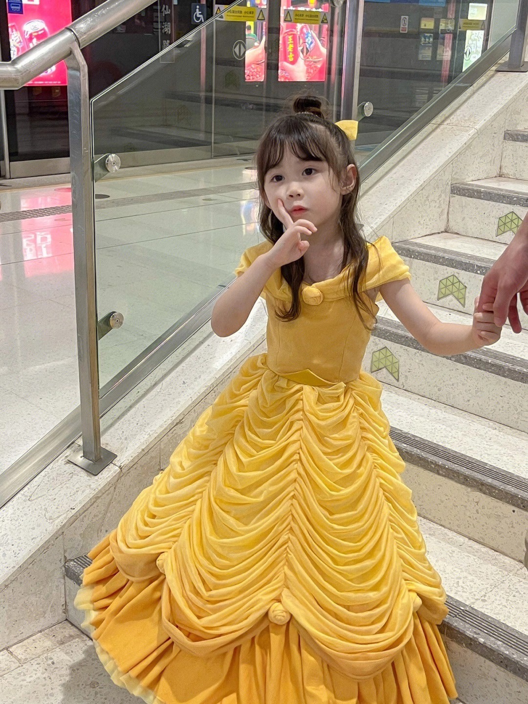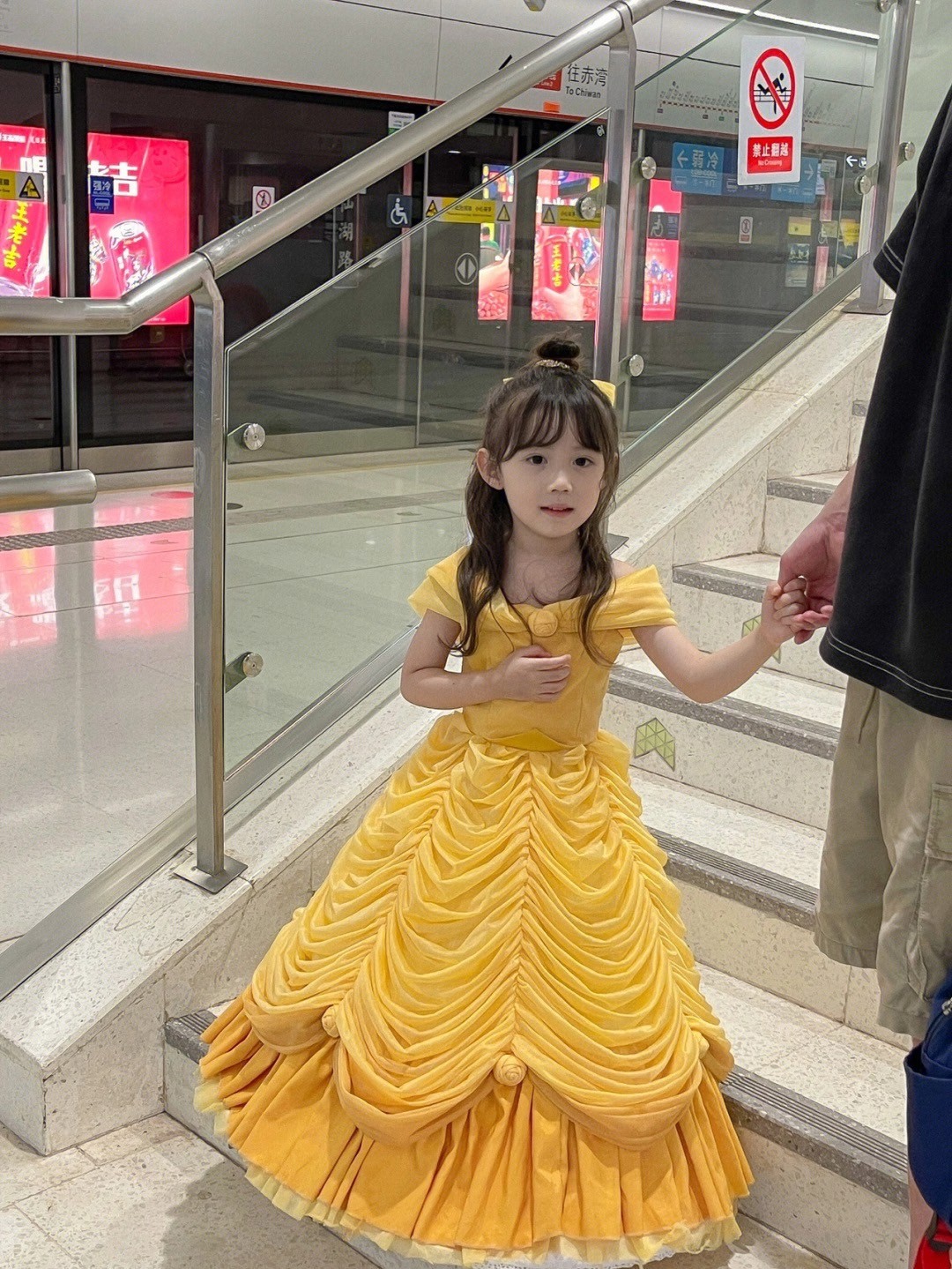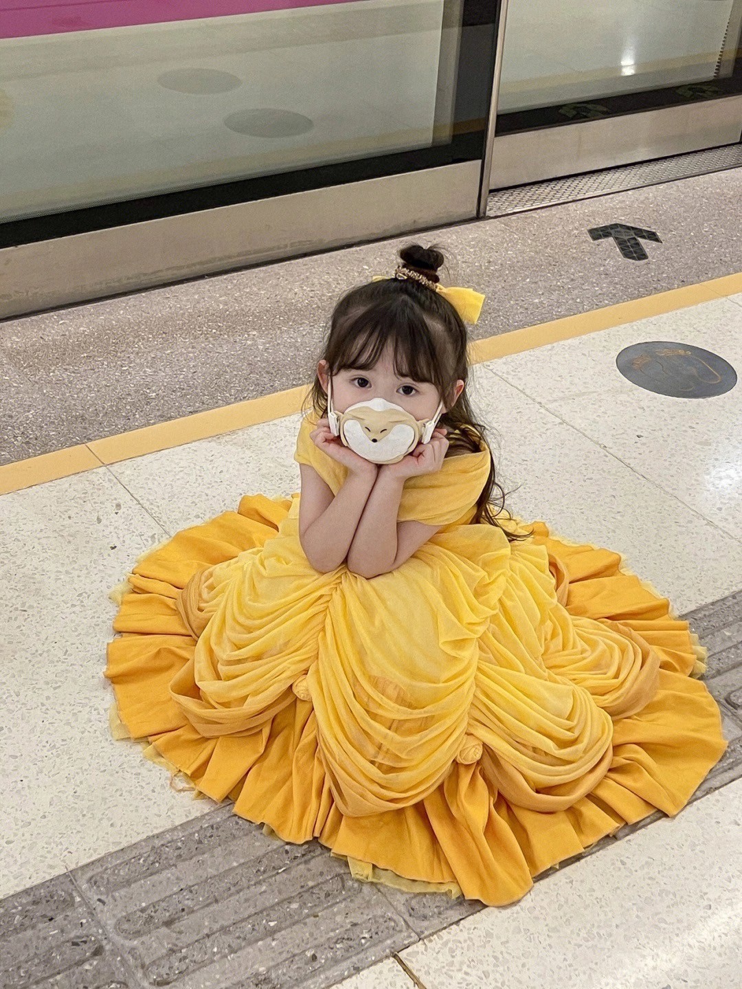 小紅書帳號@阿NO阿NO時不時會在上頭分享這位小女娃的變裝照片,其中下面這系列的貝兒公主搭車夢幻照更是引起話題,只見小女孩換上貝兒公主的黃色禮服,頭髮特地弄成甜美的公主頭,雖然戴著口罩,還是可以看出她可愛又精緻的小臉蛋。