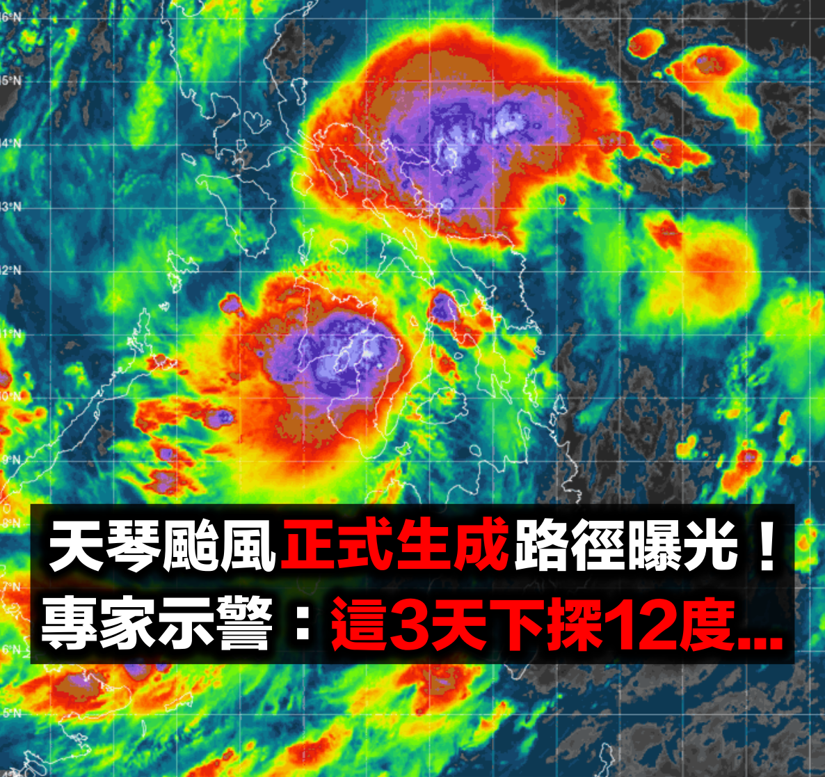 天琴颱風「正式生成」最新路徑曝光!專家示警:「這3天下探12度...」