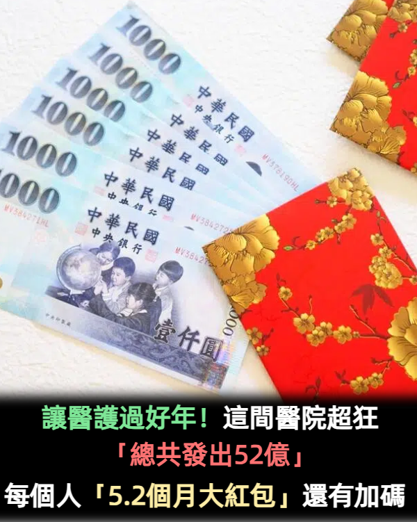 讓醫護過好年!這間醫院超狂「總共發出52億」 每個人「5.2個月大紅包」還有加碼
