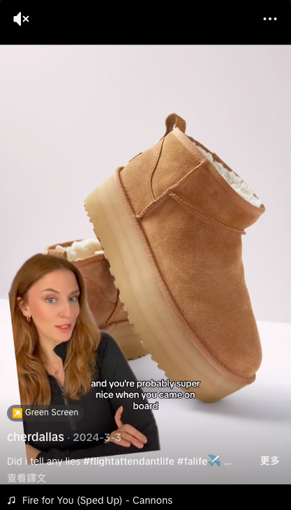 雪兒在影片裡細數了好幾款常見鞋子,並根據多年飛行經驗做出分析。她表示,腳踩「New Balance」球鞋的旅客通常態度親切,可能好久沒搭過飛機,卻意外是最討人喜歡的類型。至於穿雪靴上機的乘客,飛行途中大多也都很好相處,讓空服員能夠放心服務。