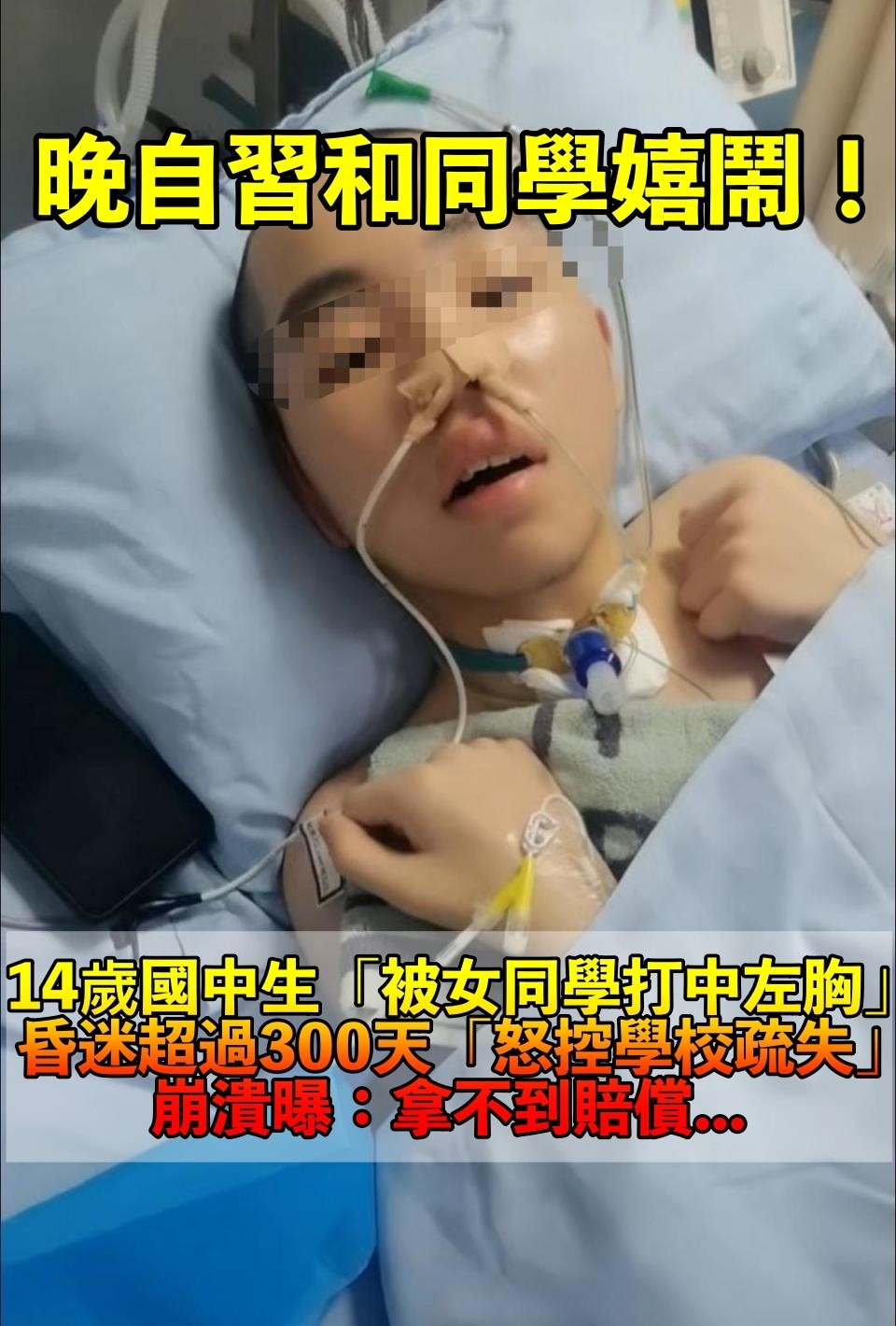 晚自習嬉鬧!14歲國三生「被女同學打中左胸」休克癱瘓 家屬崩潰「拿不到醫藥賠償」原因曝光了...