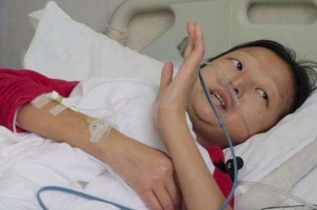 2019年10月,情況急轉直下。同學背著已無法行走的吳花燕就醫,檢查發現她罹患心源性水腫、腎源性水腫等多重疾病。當時她的體重已降至21.5公斤,不只眉毛消失、頭髮掉光,額頭更出現兩道觸目驚心的白色痕跡。