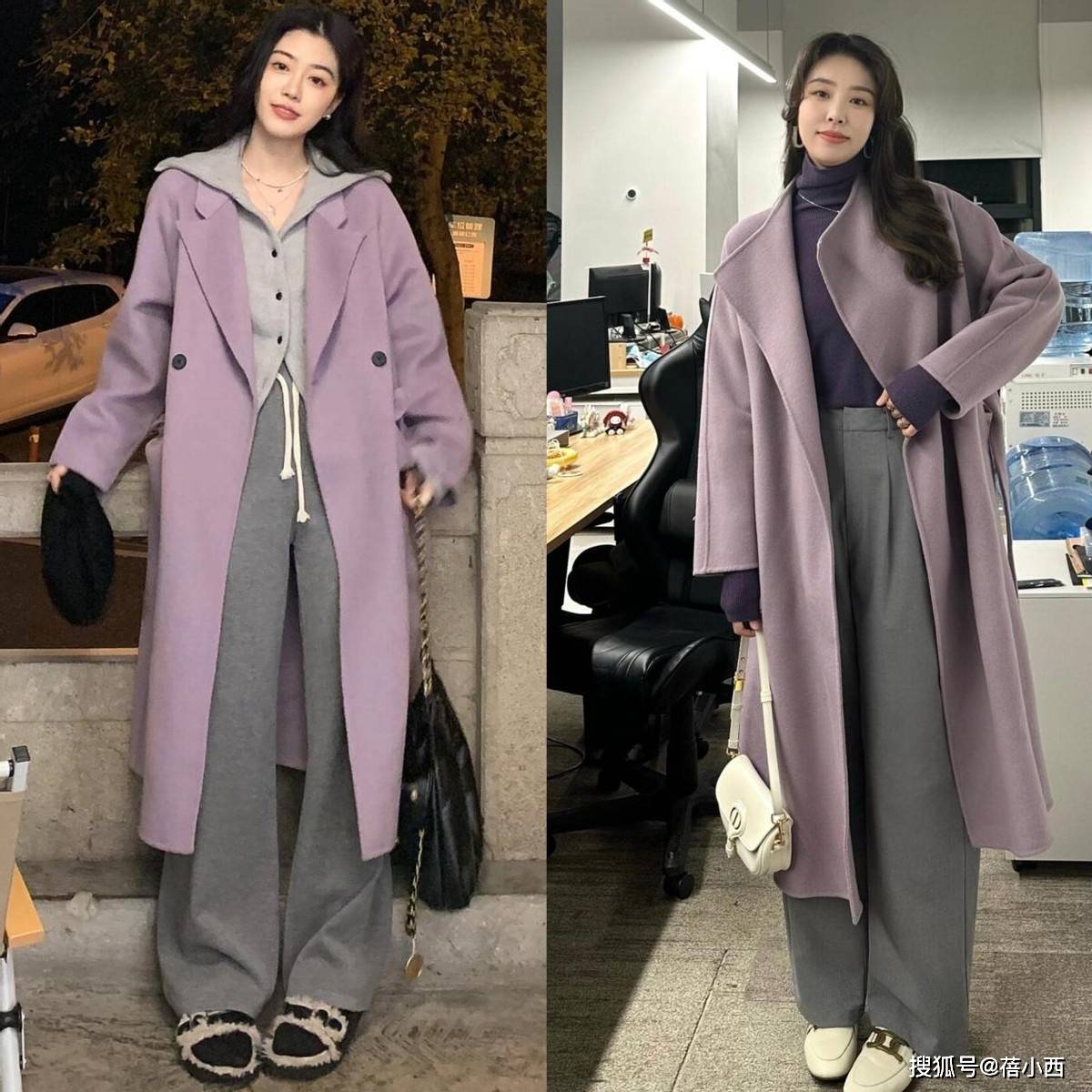 最後是自帶溫柔氛圍感的紫色大衣,自帶浪漫雅緻的質感,穿起來高級又顯氣質,還能悄悄提升精緻感,減齡又不做作。紫色分冷調和暖調,選對色調很重要,推薦冷皮選薰衣草紫、灰紫色,自帶清冷感,顯白又高級,暖皮的姐妹則適合香芋紫、茄紫色大衣,飽和度不高更耐看哦。