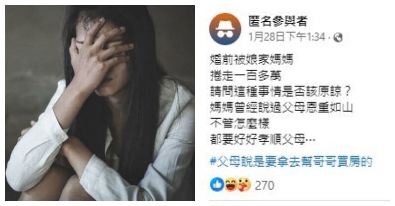 交往8年想婚!女友「要聘金208萬」男友秒提分手 她下跪大哭「為何辜負我」網嘆:要怪爸媽