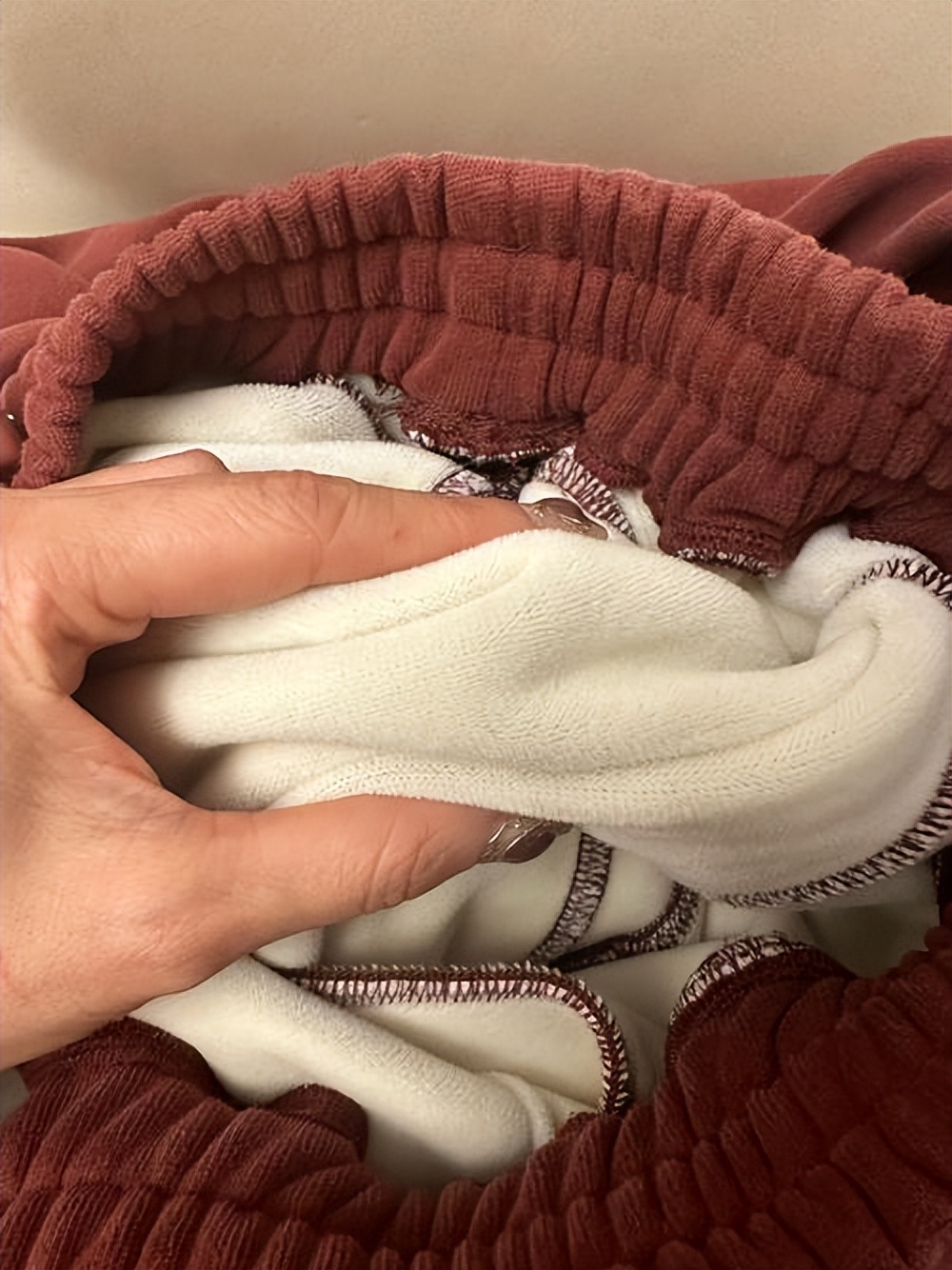 很多人以為,加絨褲就是一體織的絨布,暖和又安全。但央視曝光的劣質加絨褲,根本不是這麼做的。
