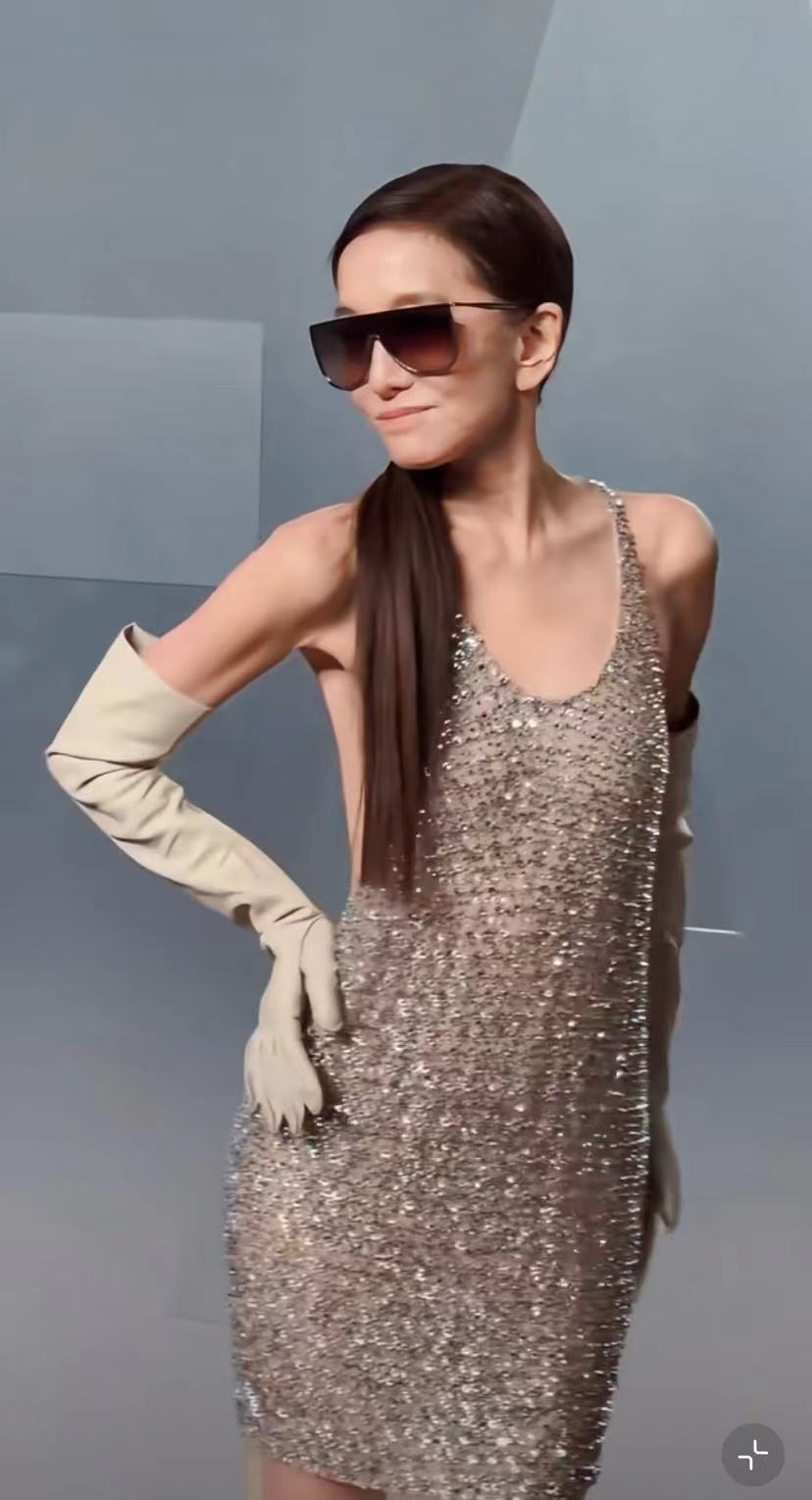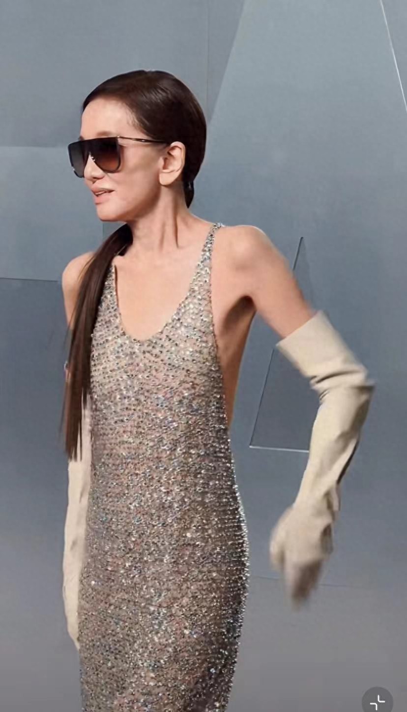 王薇薇瘦到極致,目的就是好穿衣服,不管穿什麼都很契合,這次她穿的亮片低胸長裙,依然勾勒了她的骨感身材。