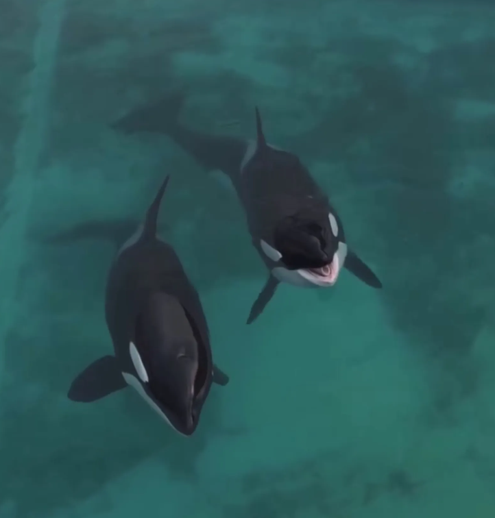 一段令全球網友心碎的影片正在瘋傳。美國攝影師約瑟夫勞倫斯(Seph Lawless)近日操控無人機,飛越一座已經關閉的海洋公園上空,意外拍下兩隻遭遺棄的虎鯨母子——23歲母鯨「維琪」與11歲公鯨「凱喬」。牠們靜止漂在髒污的水面,乍看之下彷彿已無生命跡象,然而當無人機靠近發出聲響時,母鯨竟抬起頭望向鏡頭,接著發生的事情,讓無數觀眾淚崩。