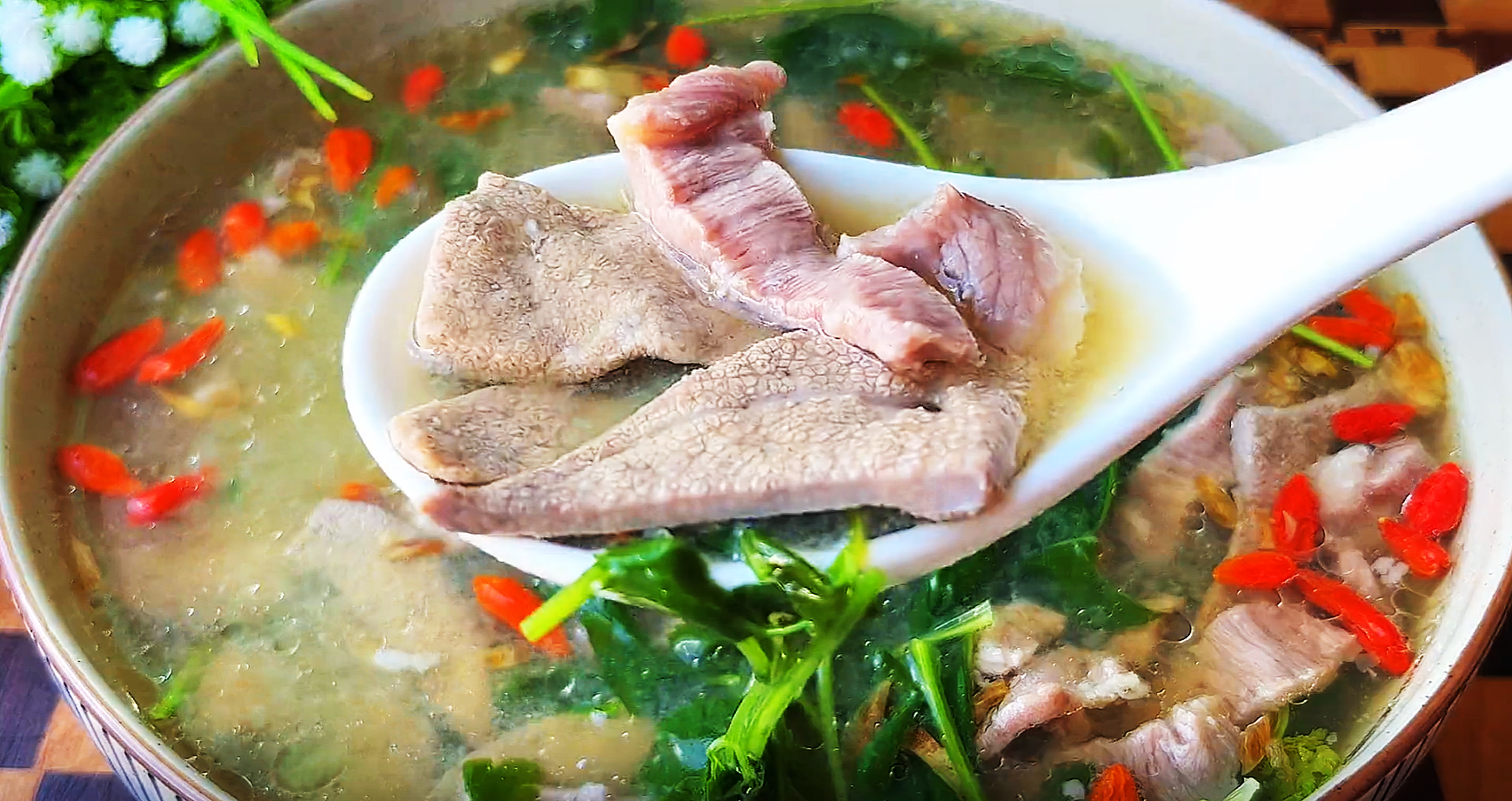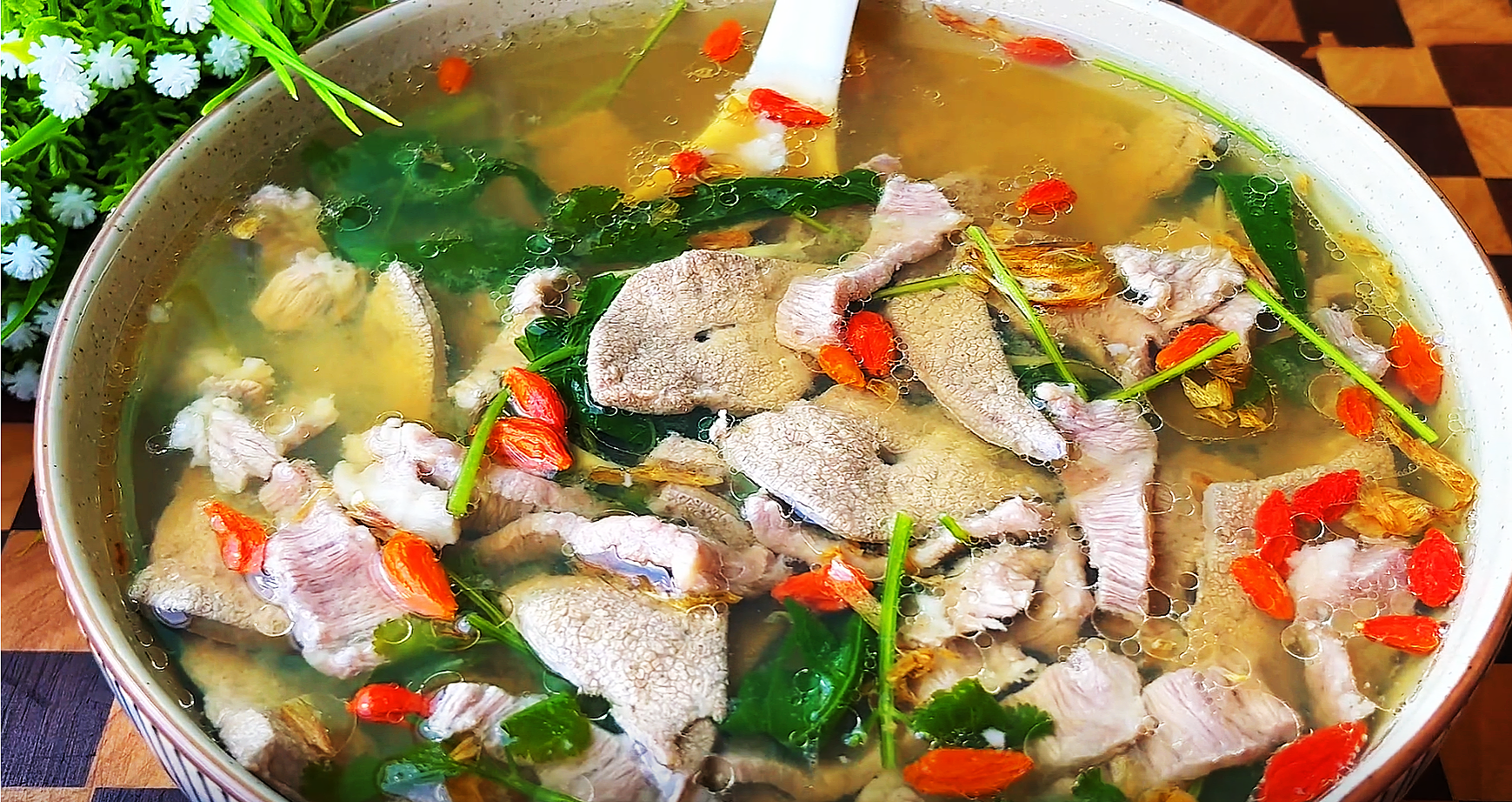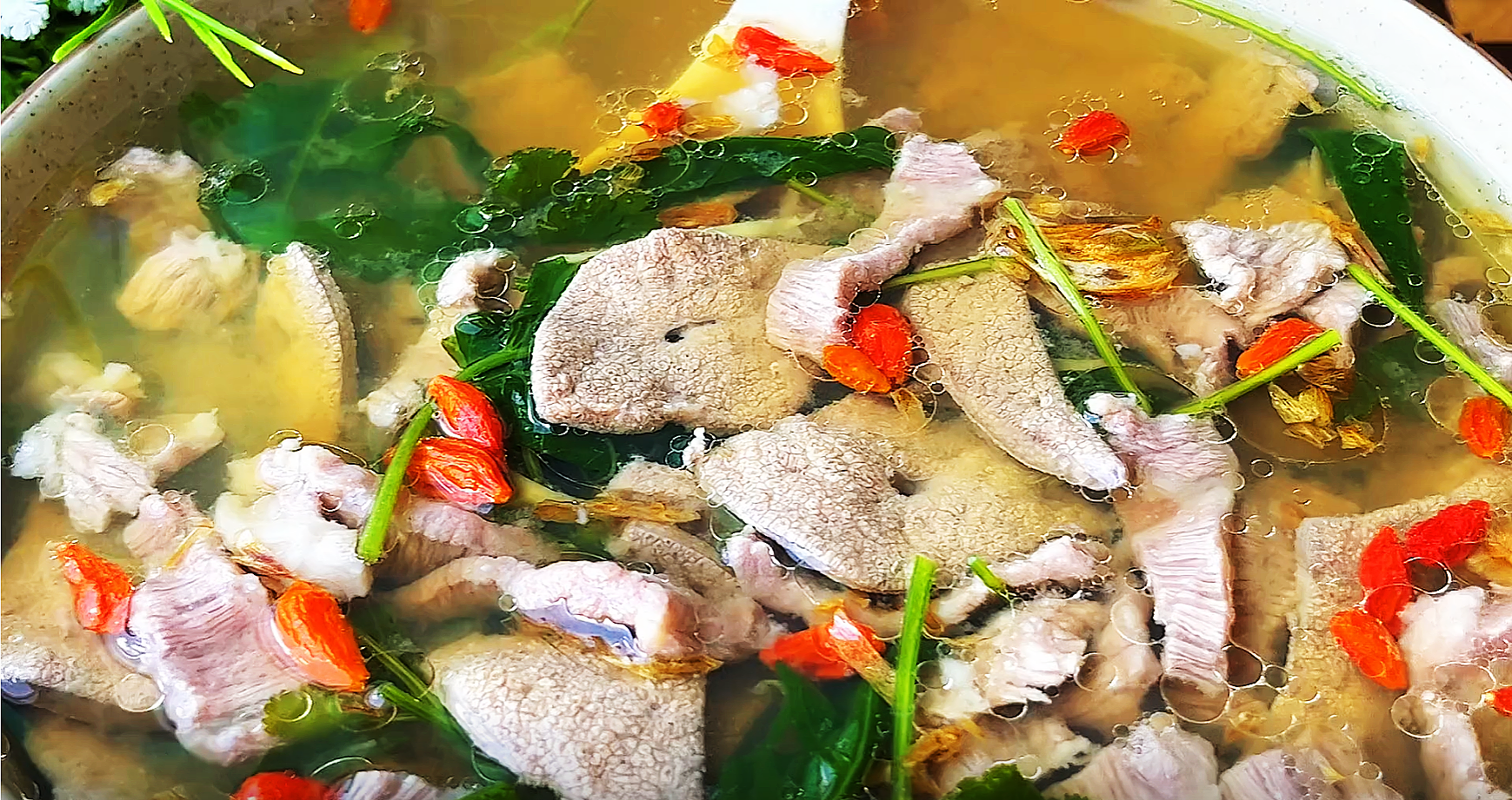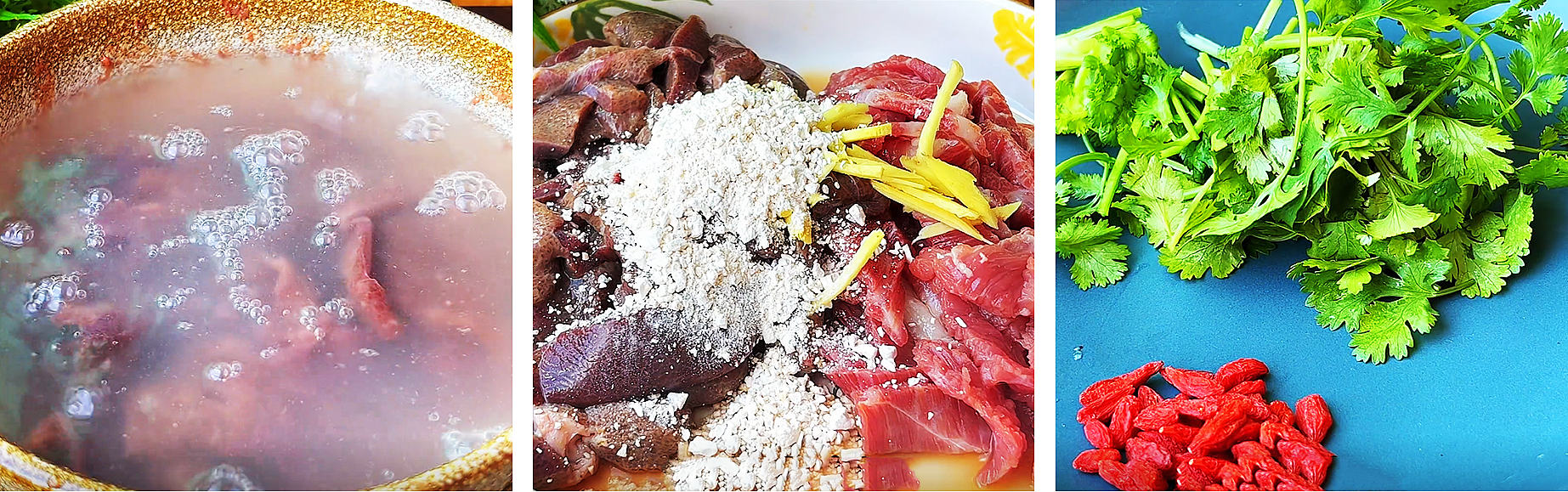 ┱ 食材清單 ┲豬肝、豬裡脊肉、生薑、枸杞、香菜