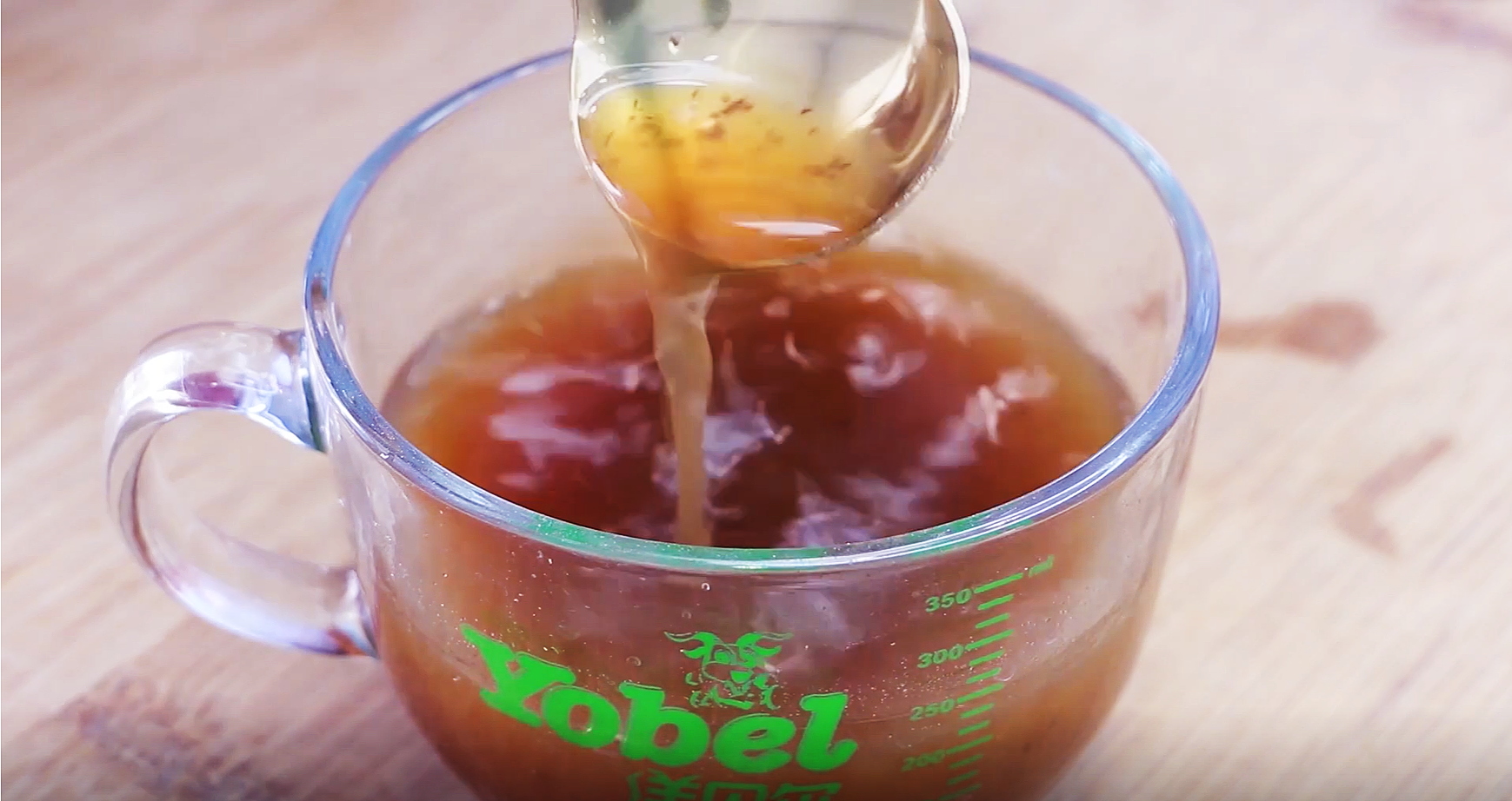 13、把熬好的紅棗薑膏盛入玻璃容器中,喝的時候舀上一勺,用熱水沖泡,非常的方便。