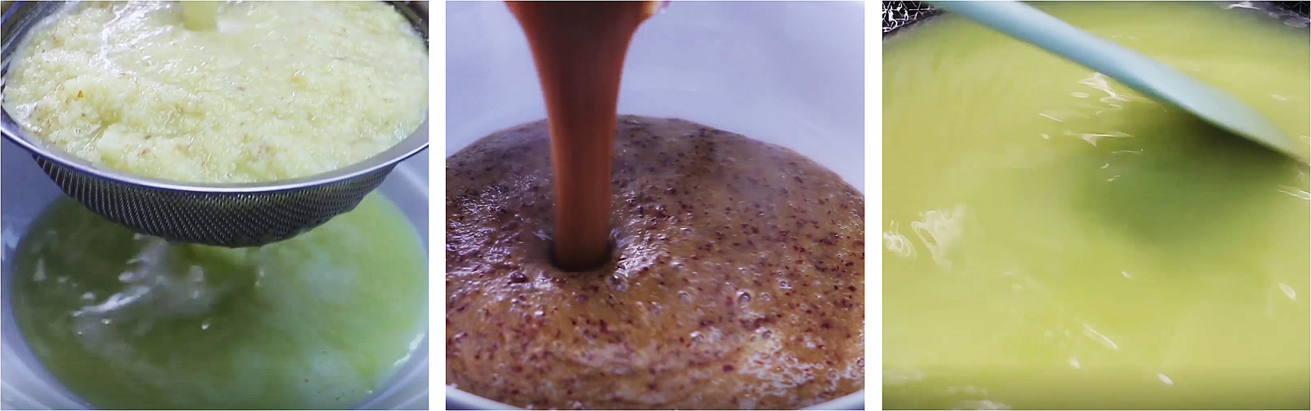 8、打好以後用一個密漏把打好的薑汁過濾一下,過濾出薑汁中的雜質,只留下薑汁備用。