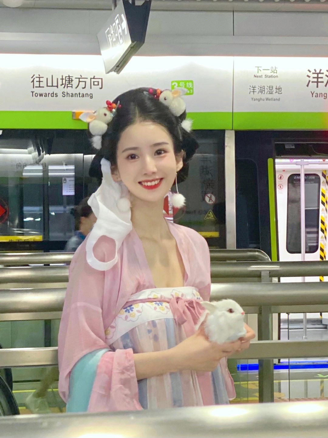 小紅書帳號「小狗」近期就分享了自己穿上漢服搭乘地鐵的畫面,她表示這是自己第一次穿上漢服,感覺十分新鮮,也直言:「只有東方女孩才穿得出漢服的韻味!」