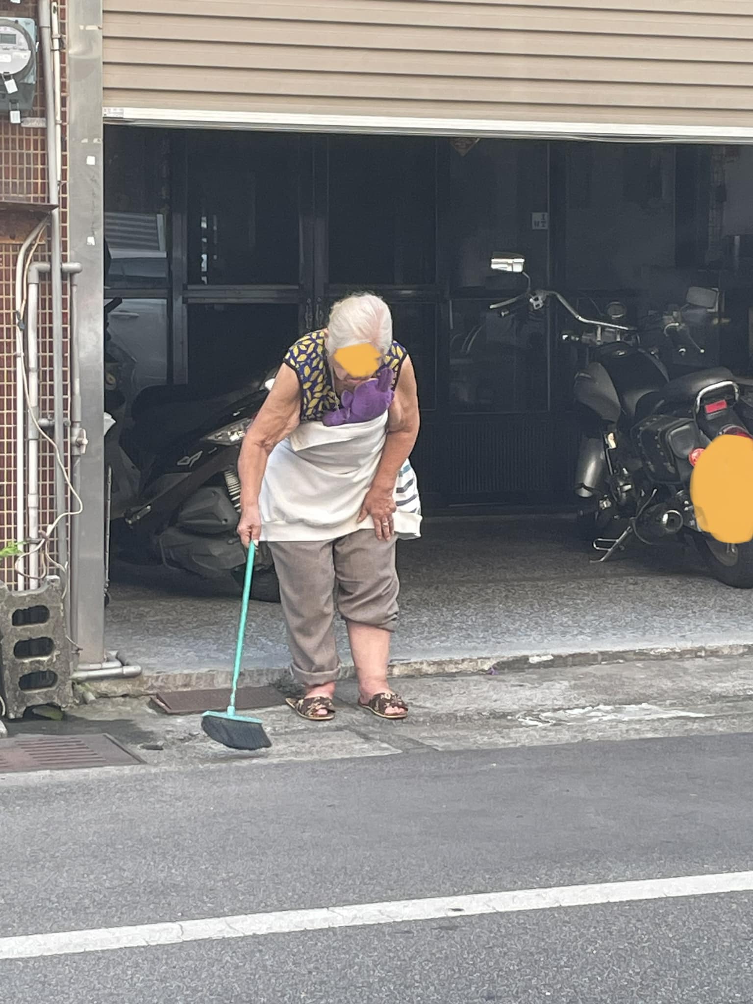 見路邊阿嬤「揹娃娃掃地」好可愛!眼尖網友細看「驚喊快送醫」:好嚴重了...
