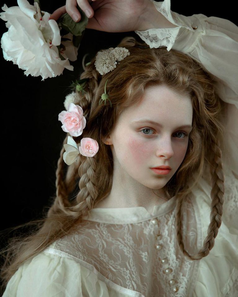 這名少女的真實身分始終沒有被公開,她在米拉娜的鏡頭下美的清新脫俗,埋在復古的玫瑰花、純白蕾絲紗裙和珍珠項鍊中,散發出脆弱又精緻的氣息,無邊的魅力讓網友都忍不住傾倒!