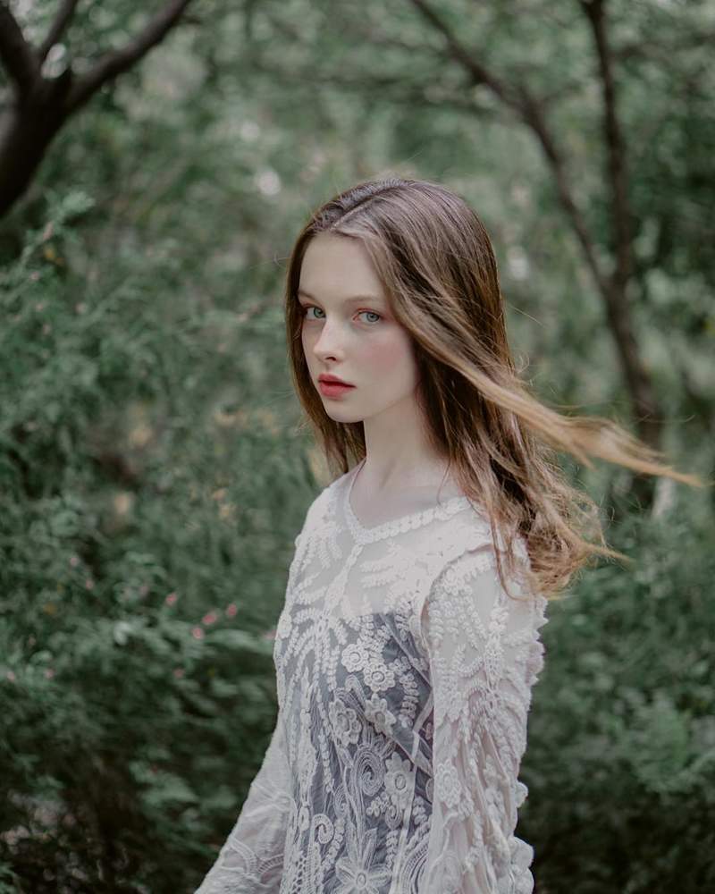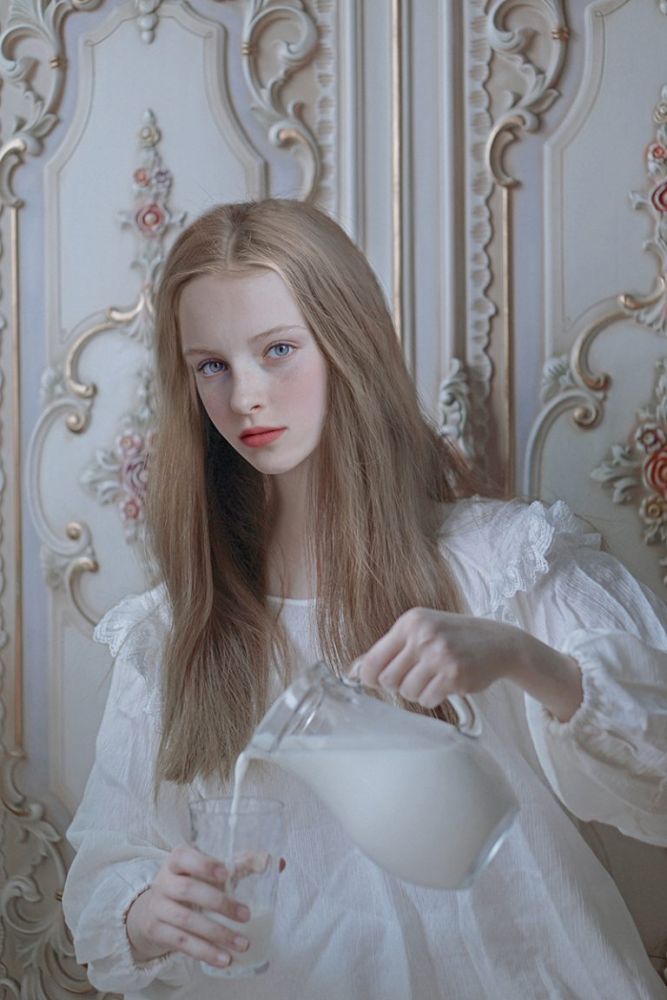 這名女孩是俄羅斯攝影師米拉娜(Milana Angelova)作品中的模特兒,只見她穿著繁複的白色蕾絲洋裝,捲捲的淺棕色頭髮完美垂在胸前,精緻小巧的五官就像天使一樣可愛,讓人不敢相信她是真實存在於世界上的人類!