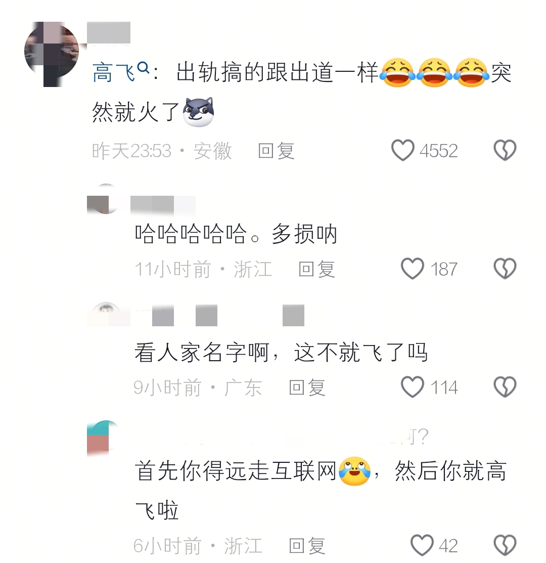 到現在正好是她發道歉影片的第四天,每條都有幾十萬按讚,帳號粉絲蹭地漲到40萬,高飛這出軌的破事搞得跟出道似的,莫名其妙就紅了。