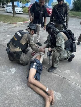 2月11日下午3時許,宋卡府警方接獲通報,指稱有人手持刀械在班普魯區某處橡膠園內遊蕩,舉止相當異常。員警趕到現場後試圖勸導這名18歲少年放下武器,豈料對方突然揮刀襲擊,導致2名員警掛彩,更趁機搶走警車內的配槍,騎著機車往附近的帕東布拉達坎基里瓦學校方向逃竄。