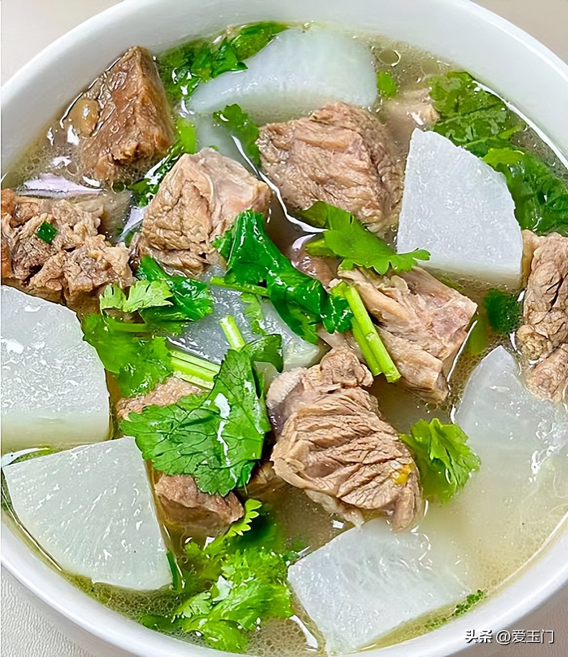 食材:白蘿蔔、牛肉、白蘿蔔、香菜。