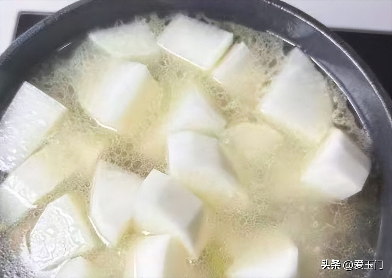 4、加入適量的清水燉煮30分鐘,然後下入白蘿蔔一起燉煮。