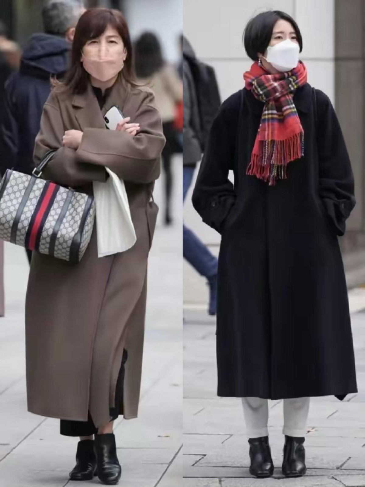 大衣的時尚表現力也很突出。為什麼日本、上海街頭的時尚程度那麼高,但凡你留心一下,就知道他們那裡穿大衣出門的女人特別多,羽絨服和棉服的出鏡率較低。