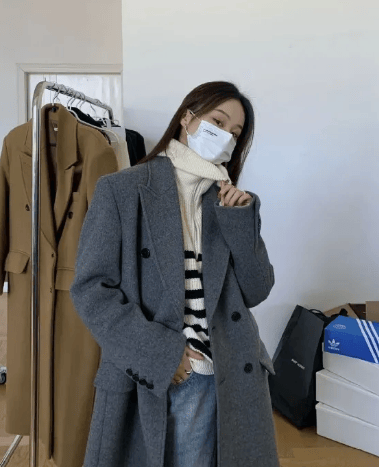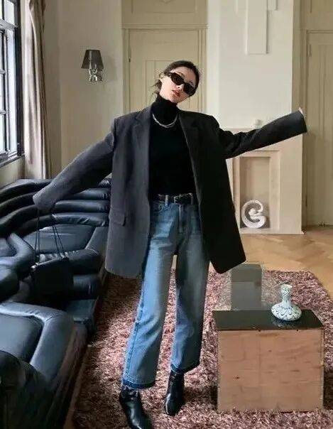 老錢風的外搭講究 「少即是多」,一件剪裁利落的深色西裝外套是首選,面料選啞光質感的羊毛或精紡呢料,避開亮面材質的浮誇感;如果想更顯鬆弛,也可以換一件駝色雙面呢大衣,自帶一種 「閱盡千帆」 的從容。