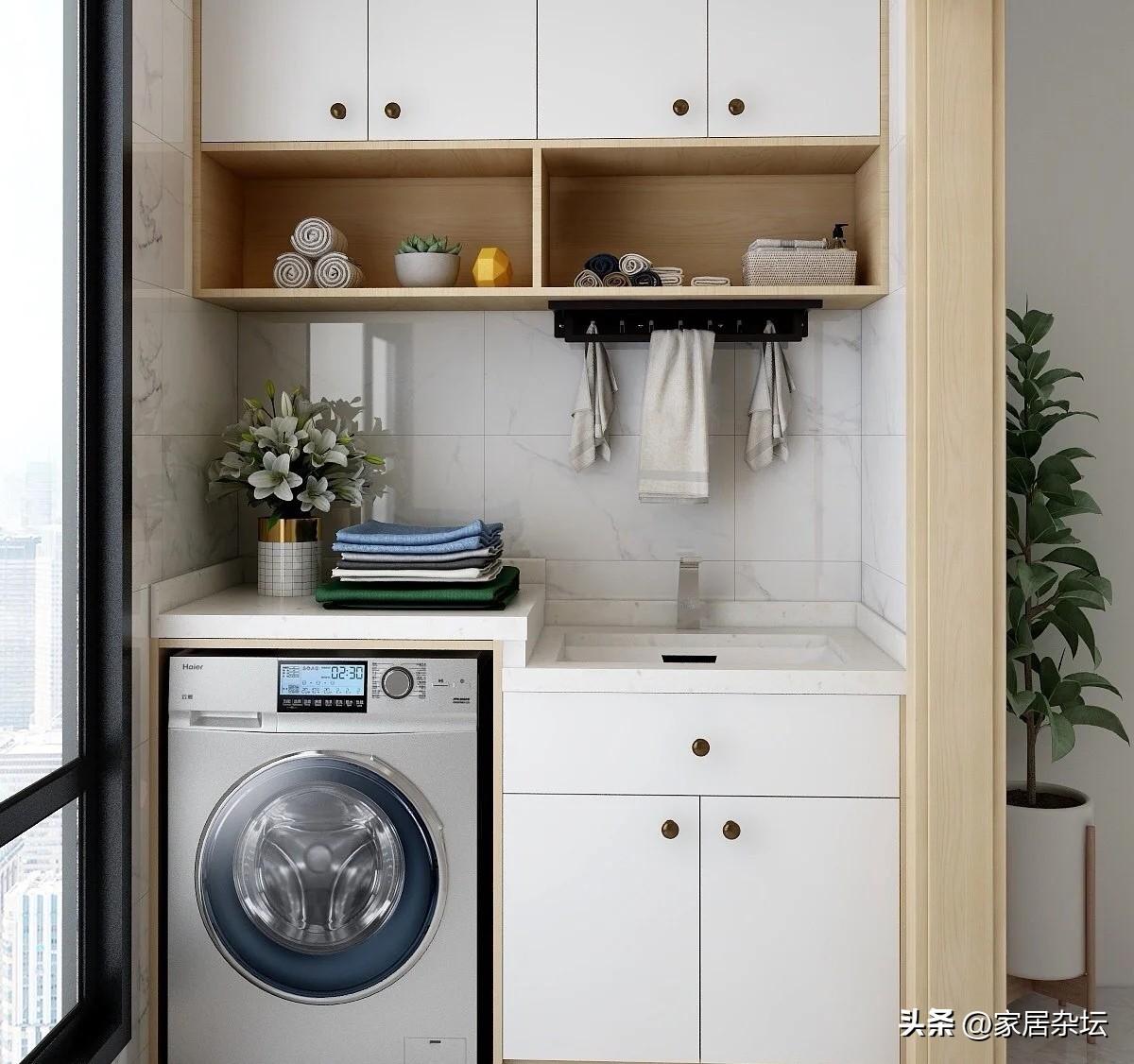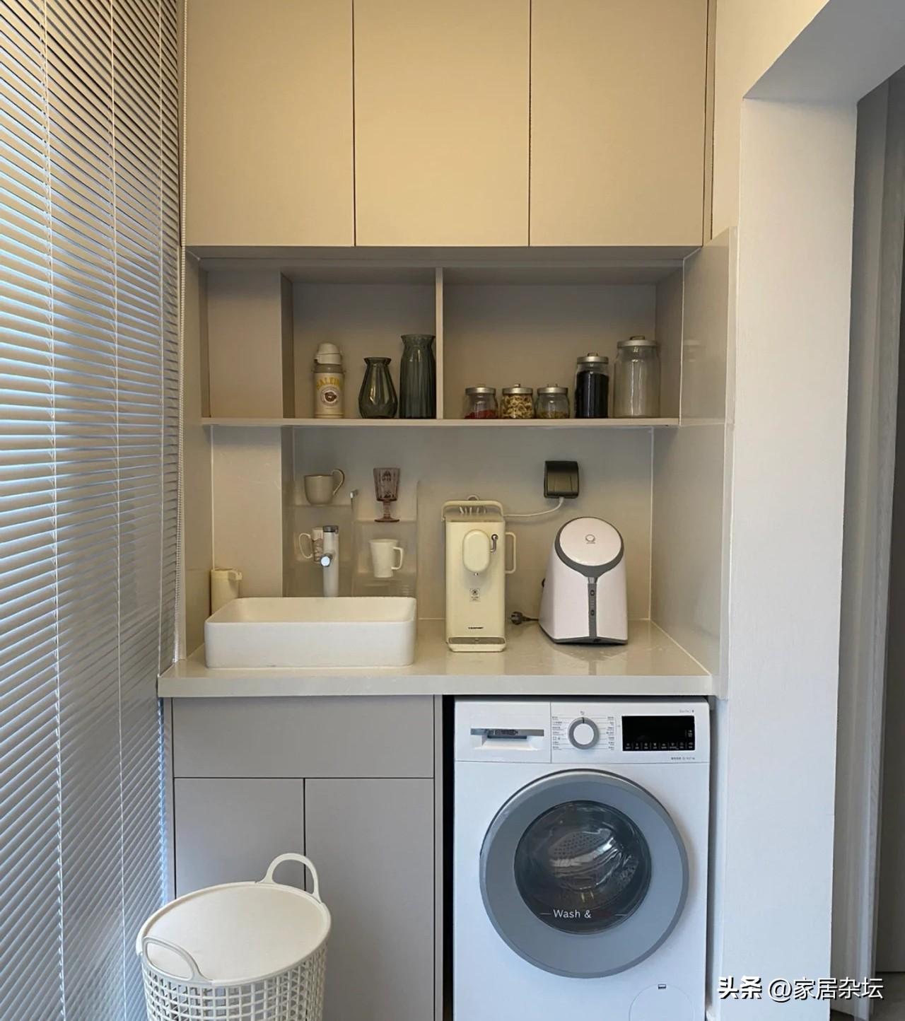 ①、增加空間利用率。因為陽台空間本身不大,如果把洗衣機再單獨擺出來就很占空間。隱藏擺放,就可以利用空間。