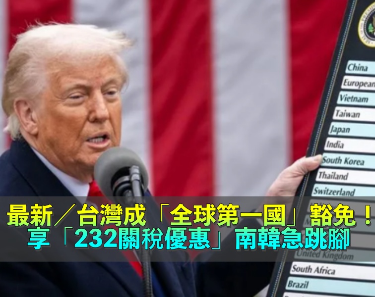 最新/台灣成「全球第一國」享232關稅優惠! 台美談判出爐「南韓急跳腳」:史無前例豁免