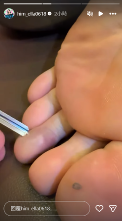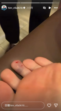 治療結束後,Ella的左腳被厚厚的白色網狀紗布層層包裹起來,腳趾和腳掌都被保護得嚴嚴實實。因為包紮的關係,她只能換上運動涼鞋才能行動。不過就算這樣,她拍照時還是輕鬆自在地坐在木椅上,對著鏡頭開心比出YA手勢,完全看不出剛經歷一番「酷刑」的樣子,敬業又樂觀的態度讓粉絲又心疼又好笑。